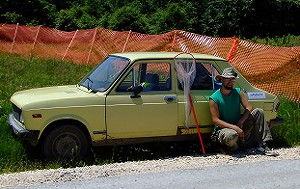 Behind the curtainFunny cook![]() This project year was a great success. We can easily say that we did twice more than we planned, if for no other reason than for Butterfly Fieldguide. Also, we accomplished much more surveys than planned, and that probably would not be possible without our cook - Đuki (Aca Đurđević) :) His responsibilty was that we always have delicious meals from cauldron, always made as cheap as possible. Fresh beans, the wispering sound of fire in front of our tents and a warm summer night will all be remembered forever! Disobedient cars![]() Motor pool of the project consisted of one red Yugo and a „Gonepteryx“ (yellow model 101, more than 20 years old), both made in Serbia by manufacturer Zastava. They served their purpose, so we managed to reach any place we wanted, but, on the other hand, it is difficult to remember a single field trip without some breakdown. If not for our emotional bond with those bangers, we would probably have all the rights to be annoyed. However, solutions seemed always to come out of nowhere, with some incredible improvisations and without our desperation. Such eventful season eventually turned us into decent mechanics! :) People and organisations involved in the project